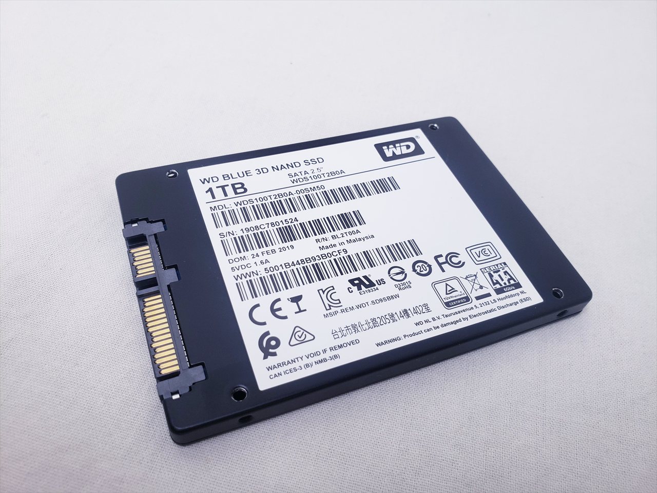 SSDのみ、 中古保証3ヶ月、 1TB、SSD、Read : 560MB/s、Write : 530MB/s、SATA 6G、WD Blue 3D NAND、2.5インチ、7mm