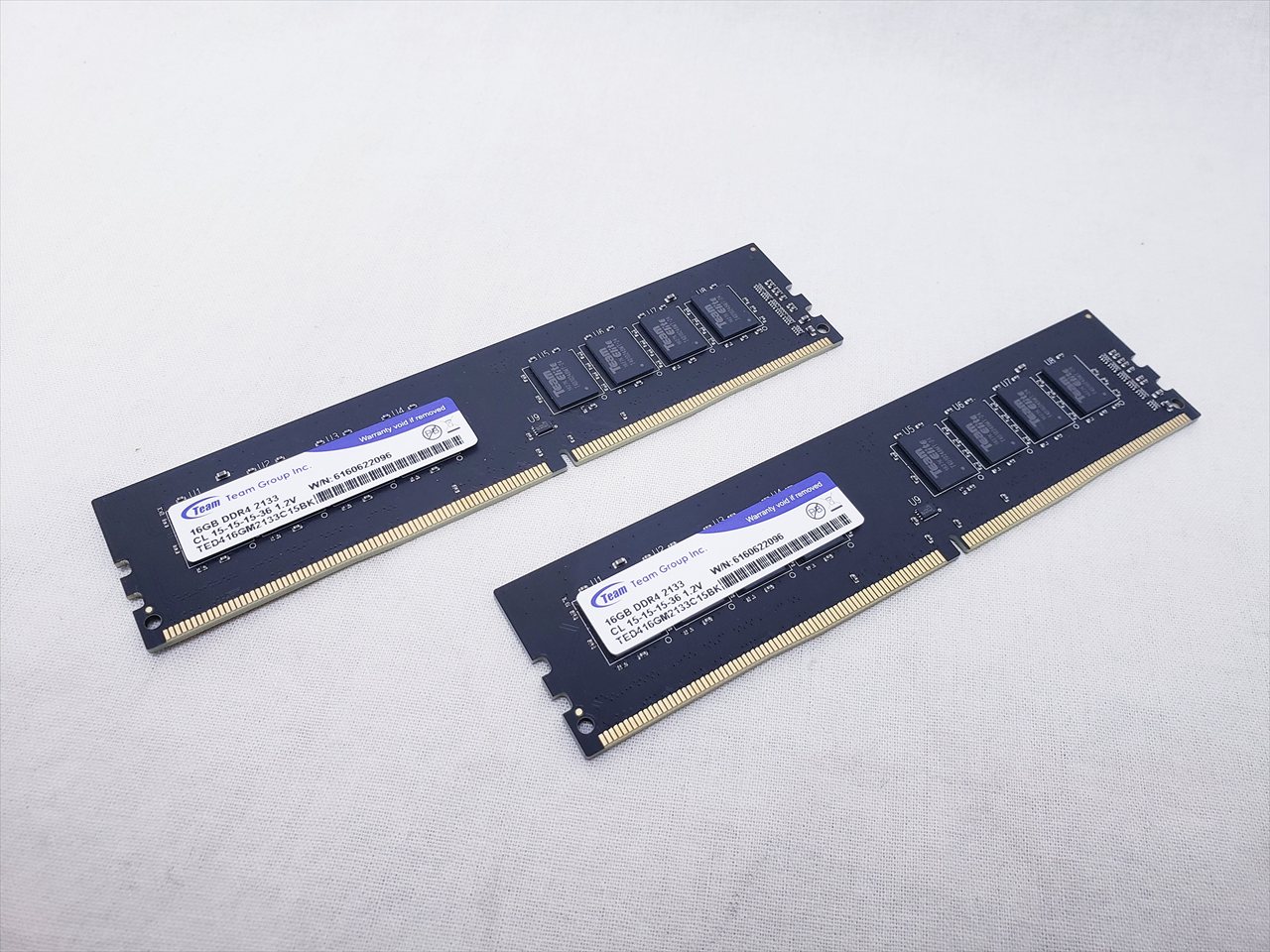 16GBx2、 中古保証3ヶ月、 288pin DDR4 SDRAM、PC4-17000、DDR4-2133、CL15-15-15-36、1.2V、Dual Channelに最適な2枚組みセット、デスクトップ用