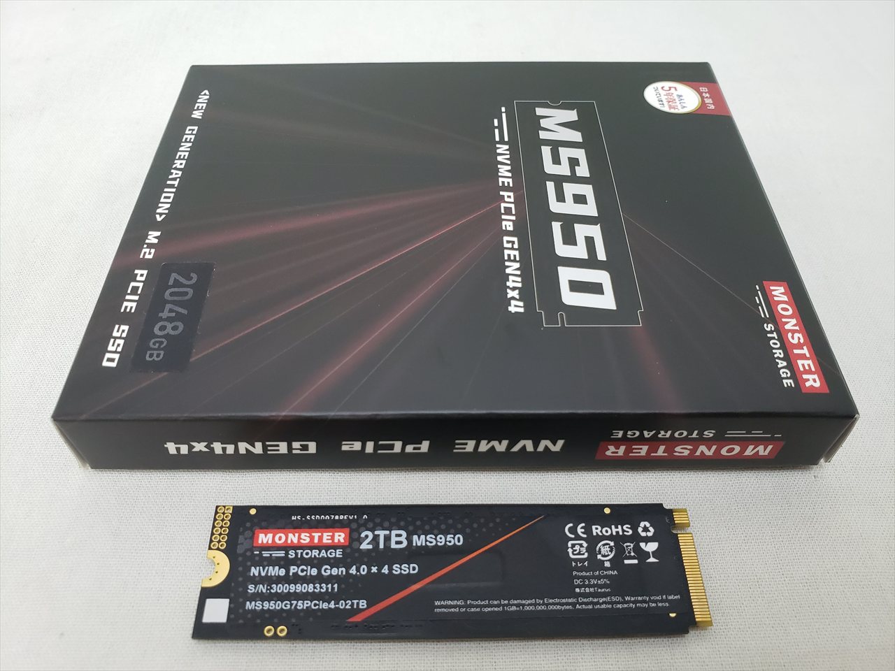BOX品、 中古保証3ヶ月、 2TB、SSD、Read : 7400MB/s、Write : 6600MB/s、M.2 Gen4x4 NVMe、3D TLC