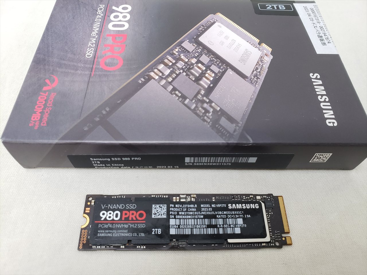 BOX品、 中古保証3ヶ月、 2TB、SSD、Read : 7000MB/s、Write : 5100MB/s、M.2 PCIe Gen4 NVMe、980 PRO