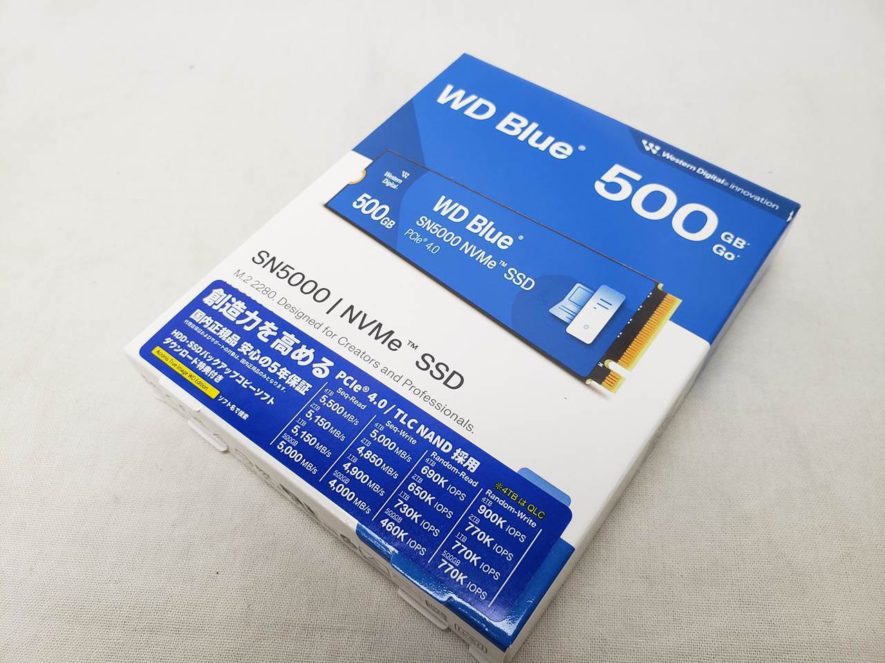 【未開封品】、 中古保証3ヶ月、 500GB、SSD、Read : 5000MB/s、Write : 4000MB/s、M.2 PCIe Gen4x4 NVMe、WD Blue SN5000 NVMe