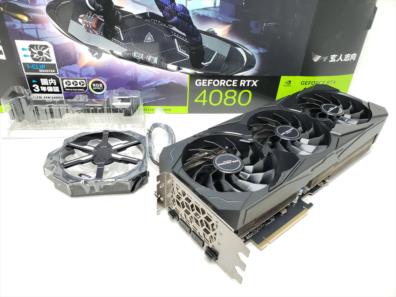 付属品あり、 中古保証3ヶ月(お客様都合による返品はお受けできません)、 PCI-Express4.0 x16、GeForce RTX 4080、(Boost 2565 MHz CUDAコア9728)、16GB、(GDDR6X、11200Mhz (22.4Gbps)、256bit)、HDMI2.1 x1、DisplayPort1.4a x3、16-pin PCIe 12VHPWR x1 または 8pin x3