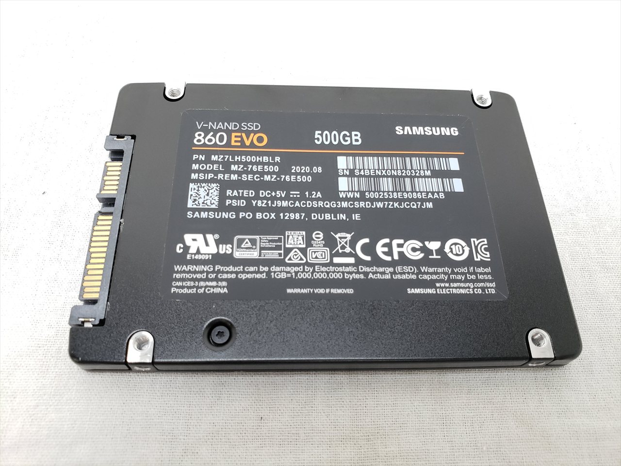 SSDのみ、 中古保証3ヶ月、 500GB、SSD、Read : 550MB/s、Write : 520MB/s、SATA 6G、860 EVO、2.5インチ、7mm、V-NAND 3bit MLC