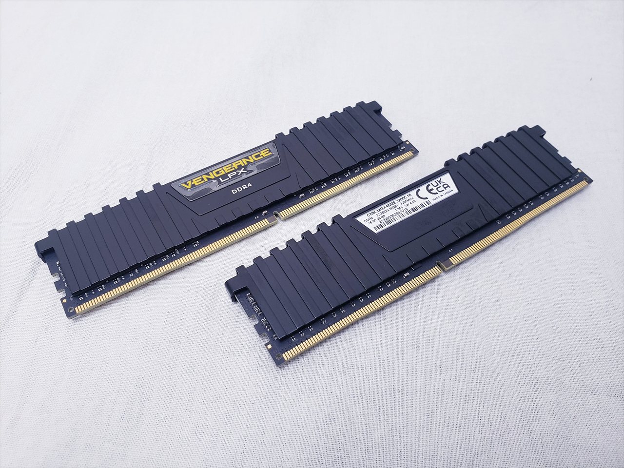 16GBx2、 中古保証3ヶ月、PCパーツ一式と同時購入で1年保証、 288pin DDR4 SDRAM、PC4-25600、DDR4-3200、CL16-20-20-38、1.35V、XMP2.0、VENGEANCE LPX、Dual Channelに最適な2枚組みセット