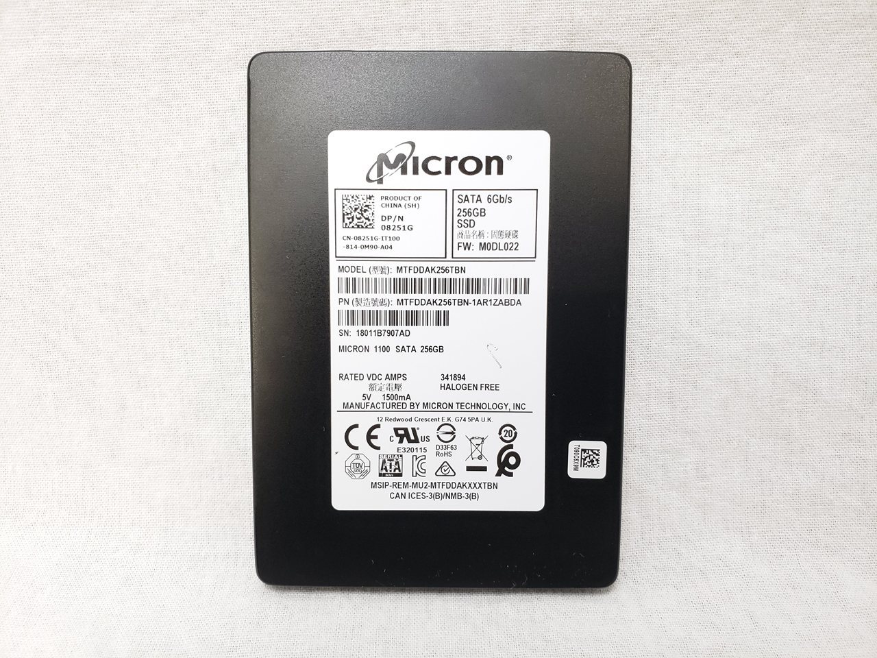 SSDのみ、 中古保証3ヶ月、 256GB、SSD、Read : 530MB/s、Write : 500MB/s、SATA 6G、2.5インチ、7mm、3D TLC