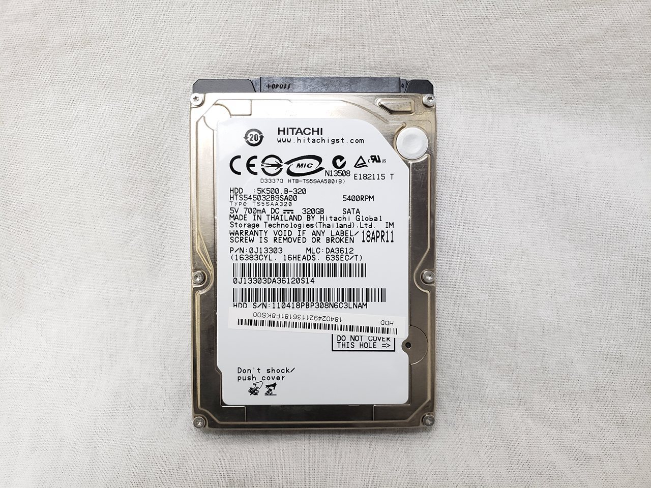 中古保証3ヶ月、 SATA 3G、320GB、5400rpm、8MB、2.5インチ、厚み9.5mm