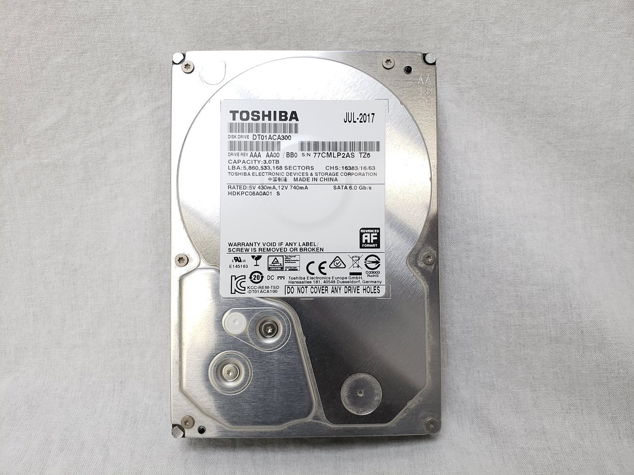 中古保証3ヶ月、 3TB、7200rpm、64MB、SATA 6G、※4K セクタ