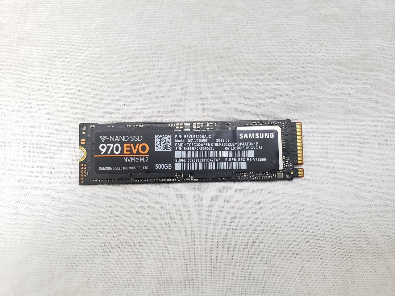 SSDのみ、 中古保証3ヶ月、 500GB、SSD、Read : 3400MB/s、Write : 2300MB/s、M.2 PCIe NVMe、970 EVO
