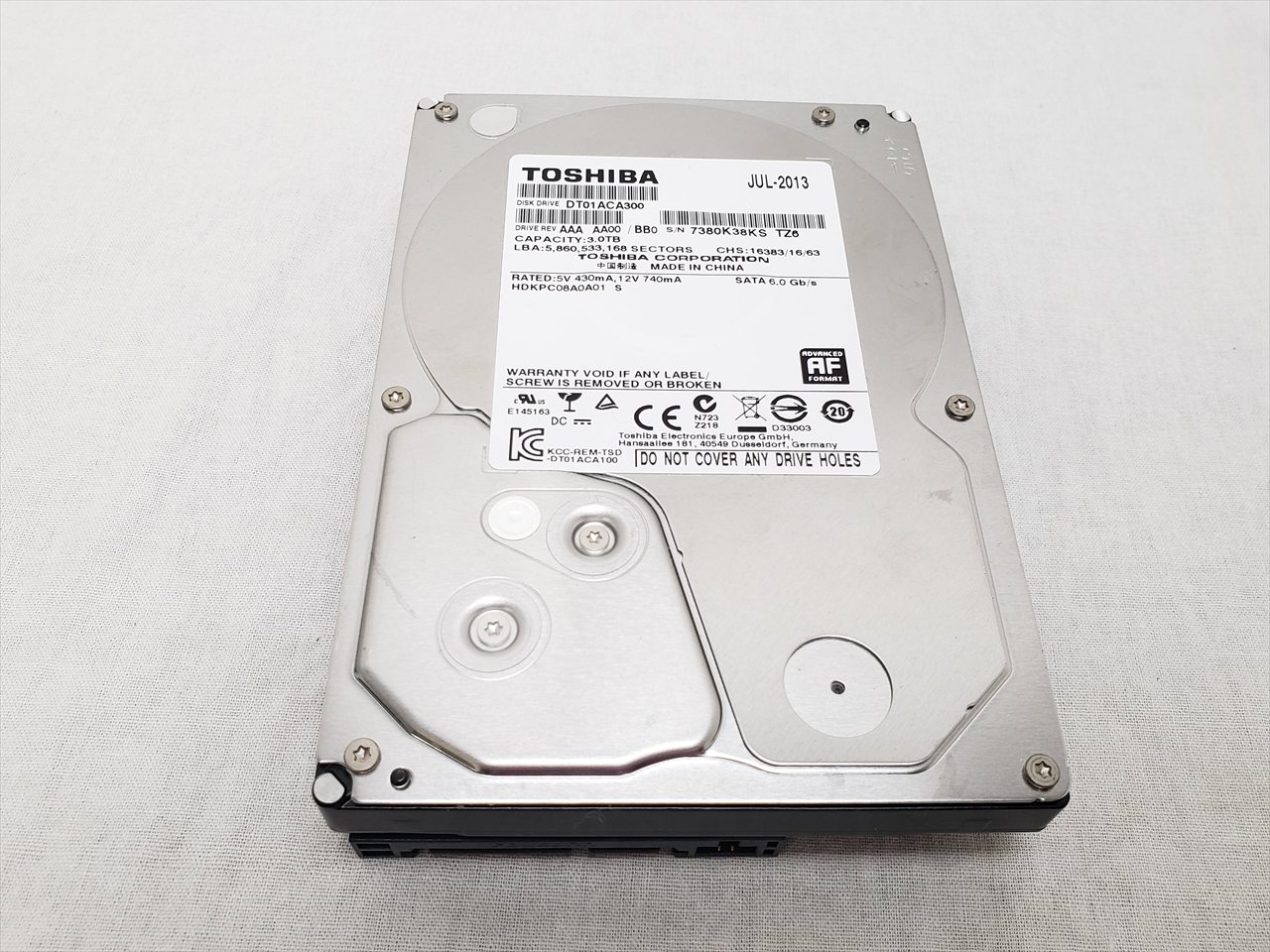 中古保証3ヶ月、 3TB、7200rpm、64MB、SATA 6G、※4K セクタ