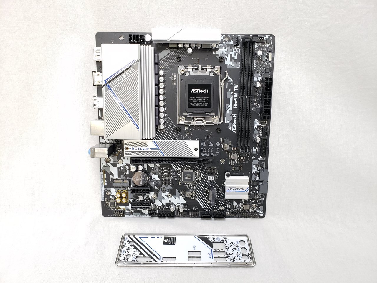 箱なし付属品:I/Oシールドのみ、CPUクーラーリテンションもなし ※BTO PC抜き取り品、 中古保証3ヶ月、 Micro ATX、SocketAM5、対応CPU:AMD Ryzen 7000 Series、AMD A620、メモリ:Dual Channel DDR5 最大96GB 2Slot、グラフィック出力端子:HDMI(1)、DP(1)、拡張スロット:PCIe x16 (1) PCIe x1 (2)、ストレージ:SATA 6G(4) M.2 (1)、ネットワーク:Gigabit LAN(1)、サウンド:7.1ch HD Audio