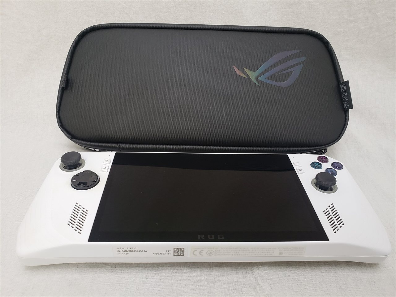 状態:C(フレーム右下部凹み/クラックあり、フレーム全体に汚れあり)、箱/主要な付属品あり、別売ROG Ally Travel Case付属、 中古保証3ヶ月、 ■Windows 11 Home■7インチ(1920×1080)120Hzタッチパネル■CPU:Ryzen Z1 Extreme■LPDDR5-6400 16GB■ストレージ:512GB NVMe■無線LAN(Wi-Fi6E IEEE802.11a/b/g/n/ac/ax)、Bluetooth5.1■ステレオスピーカー、USB3.2(Gen2) Type-C、microSDXCカードスロット■W280xH21.22xD111.38mm 約608g■FreeSync Premium対応
