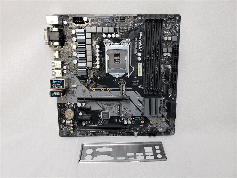 ボードとIOシールドのみ、 中古保証3ヶ月、 ATX、LGA1151、Intel H370、メモリ:DDR4 2666/2400/2133 MHz 4Slot Max.64GB Dual Channel 対応、グラフィック出力端子:HDMI(1) DVI-D(1) D-sub(1)